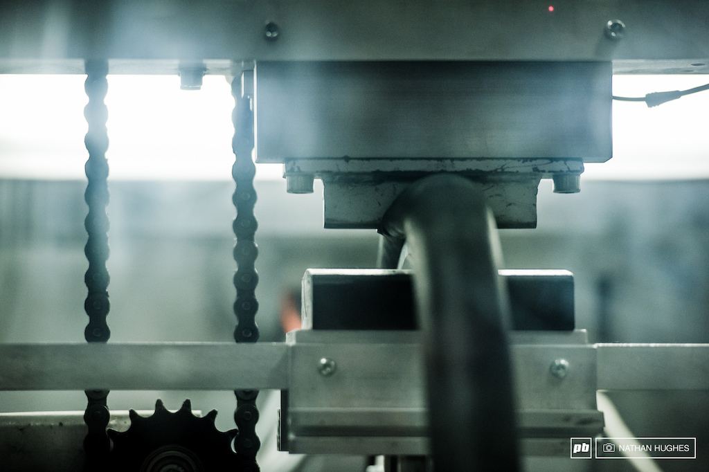 歡迎來到「酷刑室」。他們真的這樣稱呼它。有人稱作「實驗室」,但是在這裡,不管用什麼標準看它,這三個都是單車狂熱的技師團隊都以研發之名,無盡地折磨這些外胎們。